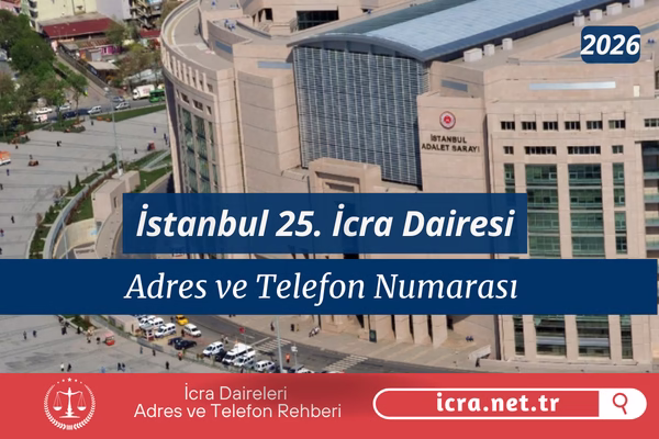 Bu yazımızda, İstanbul 25. İcra Dairesi’nin adresi, telefon numarası, dahili hatları, çalışma saatleri ve güncel IBAN hesap bilgilerini bulabilirsiniz.